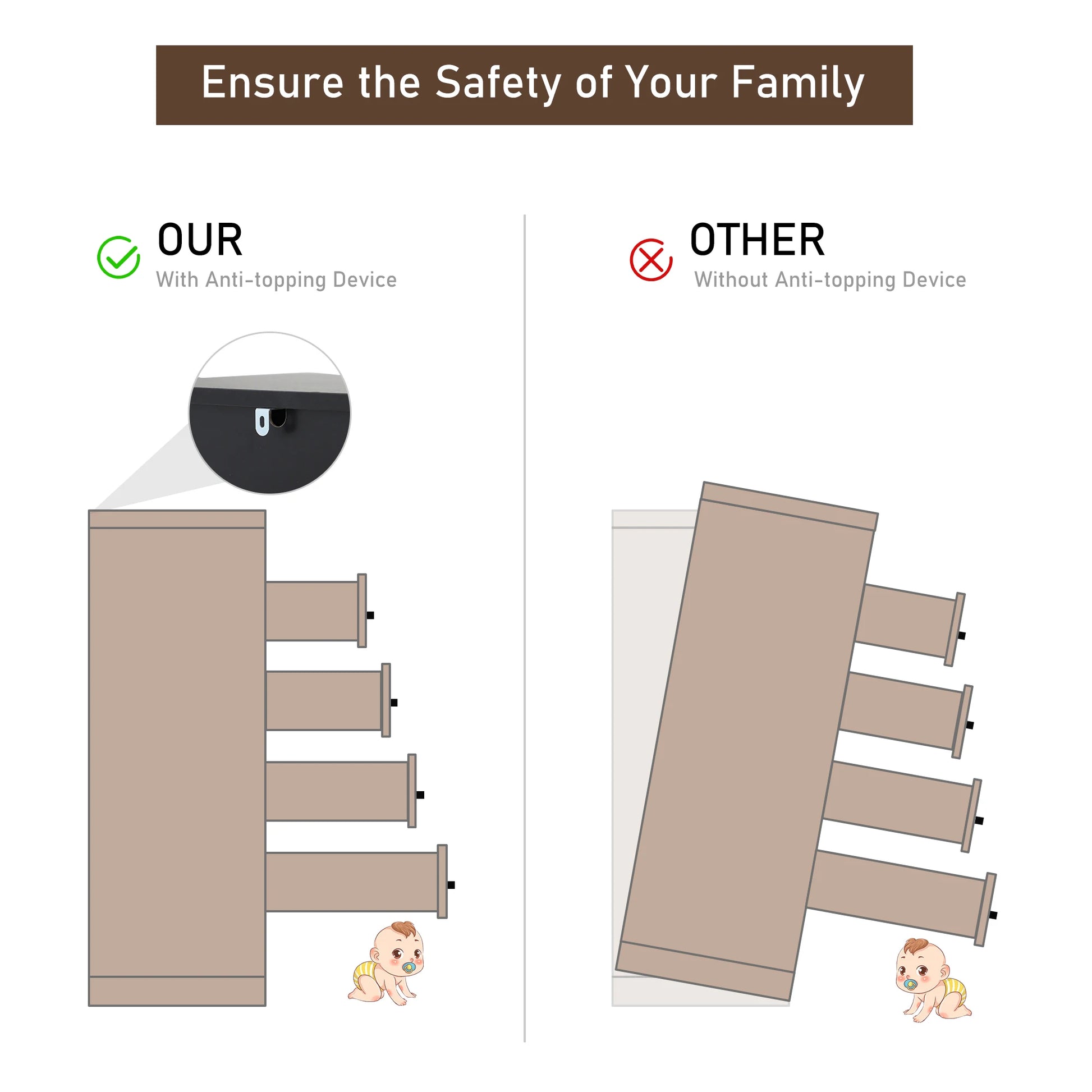 - Sturdy construction using engineered wood, waterproof bottom base, and smooth metal slides for durability and easy daily use.